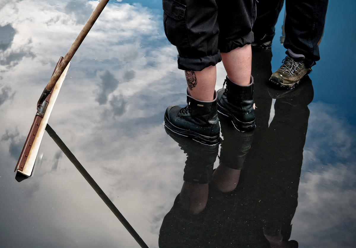 I brought the three images into photoshop and masked out the unwanted areas. With some heal/clone work to remove unwanted wires and highlights and a final curves adjustment, the image was done!