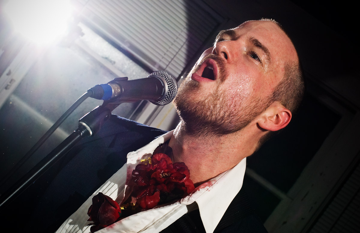 I lit the back room in red first using a Nikon SB-700 with a red gel. I added a diffuser cap, zoomed the flash out to 14mm and set it to 1/2 power to fill the room with red. I positioned the flash behind my right shoulder to give some rim light and as a fortunate consequence it projected a nice red spill onto the floor of the main room.