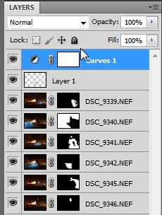 DSC_9345 DSC_9346At this point the images look like a mess with many points of light and many Owens. However, by choosing which part of each image I wanted to come through using layer masks I could clean this up considerably. Below I show a capture from Photoshop with each of the images and their corresponding layer mask. Notice that for the most part only a small area (the white region of the layer mask) is used in the composite.