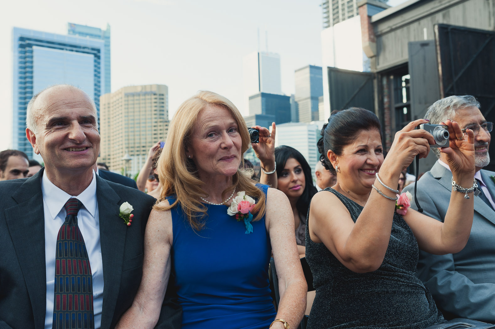 Elisabeth and Behzad got married in style at the Steam Whistle Brewery in Toronto this past July. My afternoon started at their fantastic apartment where I got to see the beautiful dress (that Elisabeth made herself!) and meet the super-fun bridesmaids. The makeup was exceptional, thanks to the talented Misty Fox, which made my work in post a breeze (where skin was concerned). Once I arrived at the Steam Whistle (after an unfortunate delay from the thousands of Blue Jays fans pouring into the streets after the game) I met the guys and set about photographing the wedding party. The weather was HOT and BRIGHT so I quickly whisked everybody to a shaded area. If you look closely at these photos you might spot the Leon’s store through the windows. The ceremony had many Persian elements, as Behzad and family are Iranian, and was quite beautiful. Thankfully the sun dipped had below the SkyDome just in time to not cook the guests.