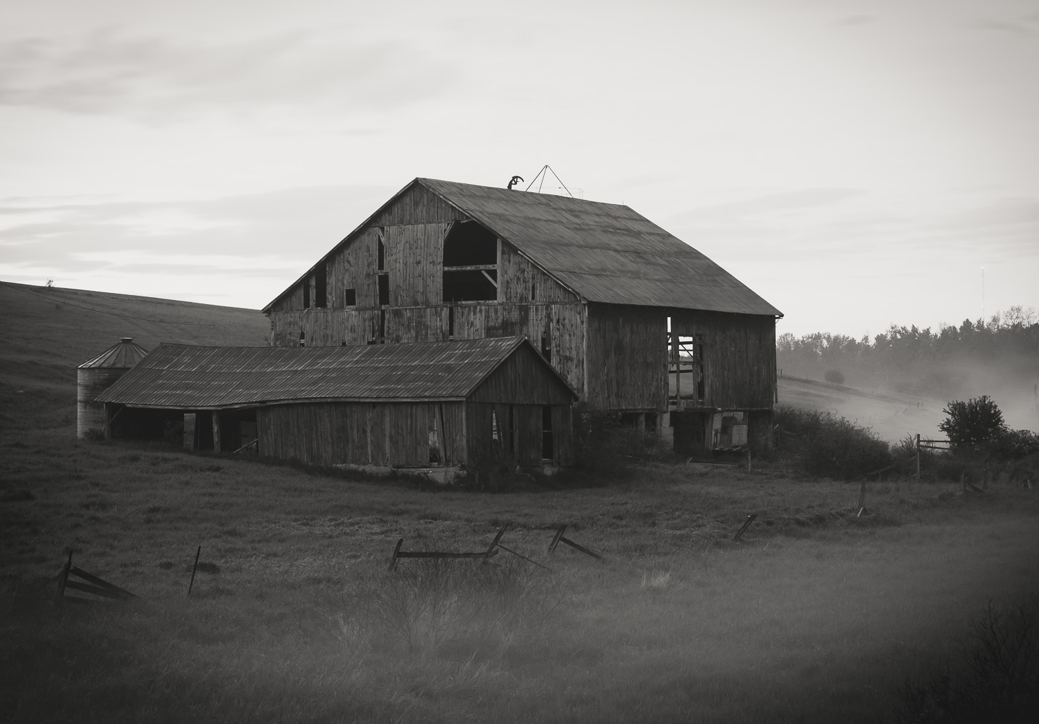 Driving home from Guelph, Mitzy and I pulled over at a barn that both of us have always wanted to photograph. You wouldn’t know it from this post, but it’s actually quite red. The mist gives it a completely different feel! I thought I’d show three quick interpretations of the same photo to get a feel for which is most effective.