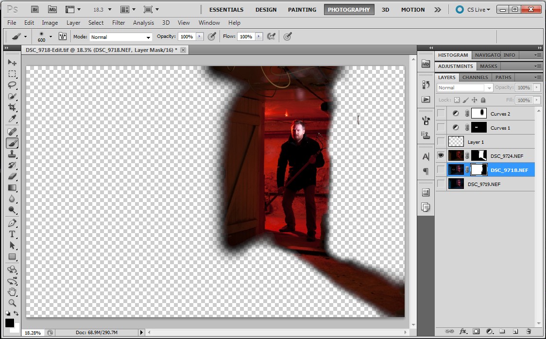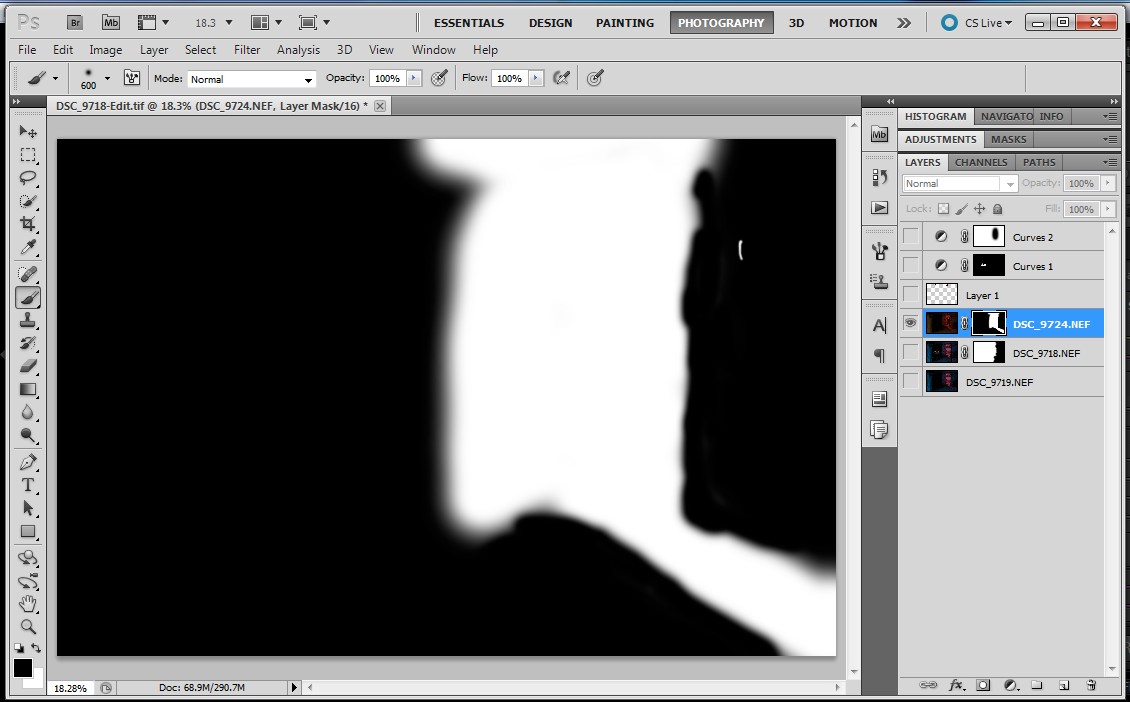 I had a hunch. I checked the image settings and confirmed that I was shooting in 12 bits. The D810 is capable of generating 14 bit files but I don’t use them because I’ve honestly never needed to. However, in multiple exposure mode each of the images that make up the final image is shot underexposed.